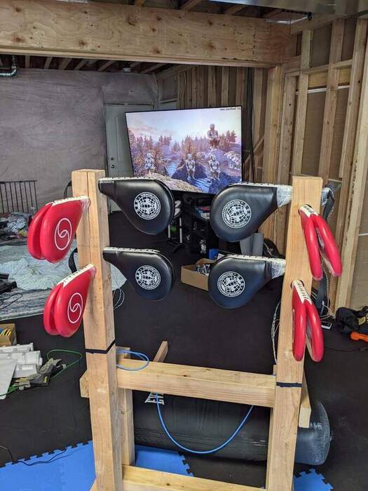 An arcade game, where you have to punch or kick the indicated targets, using actual taekwondo paddles, so you can kick or punch as hard as you want.